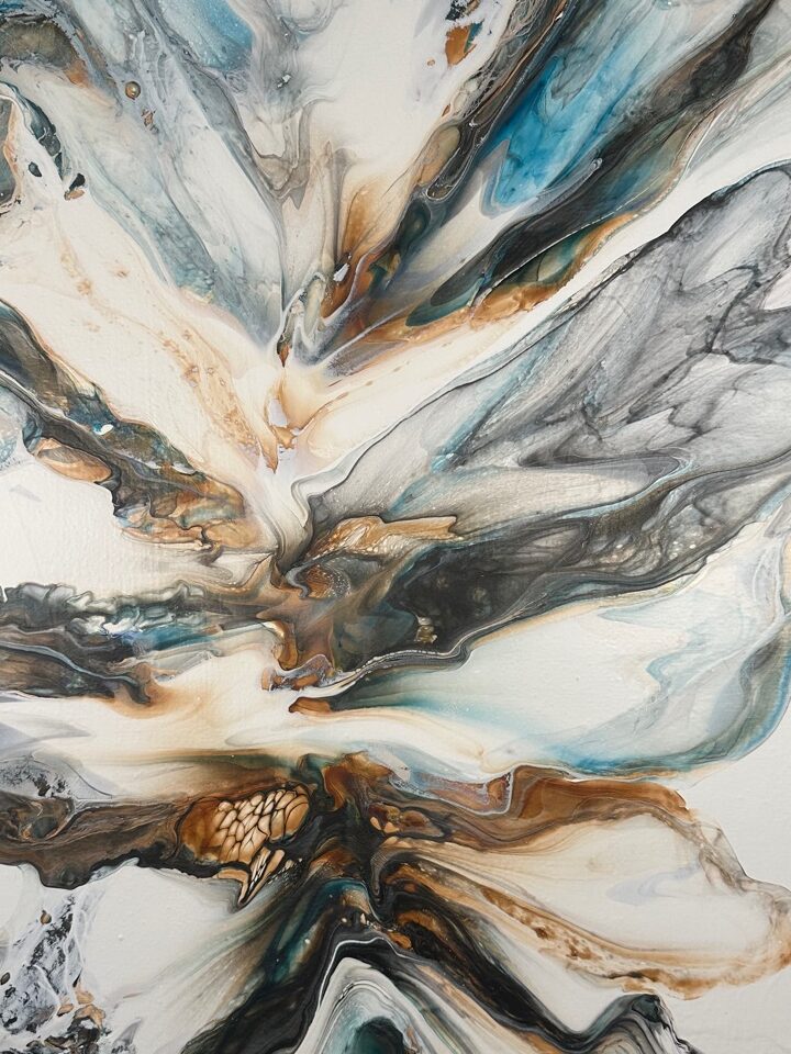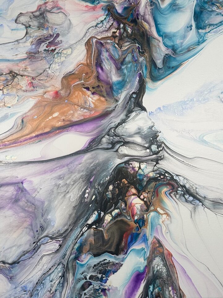 The Art Walk offered a dynamic environment where visitors could experience the work up close while engaging directly with the artist. Kat presented a curated selection of recent pieces, showcasing expressive compositions defined by movement, layered color, and a strong sense of presence.